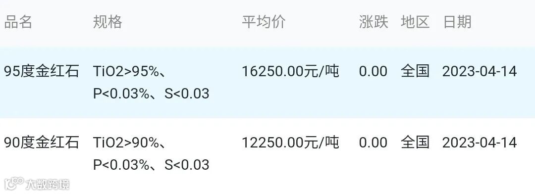2023年04月14日金红石材料市场参考价: