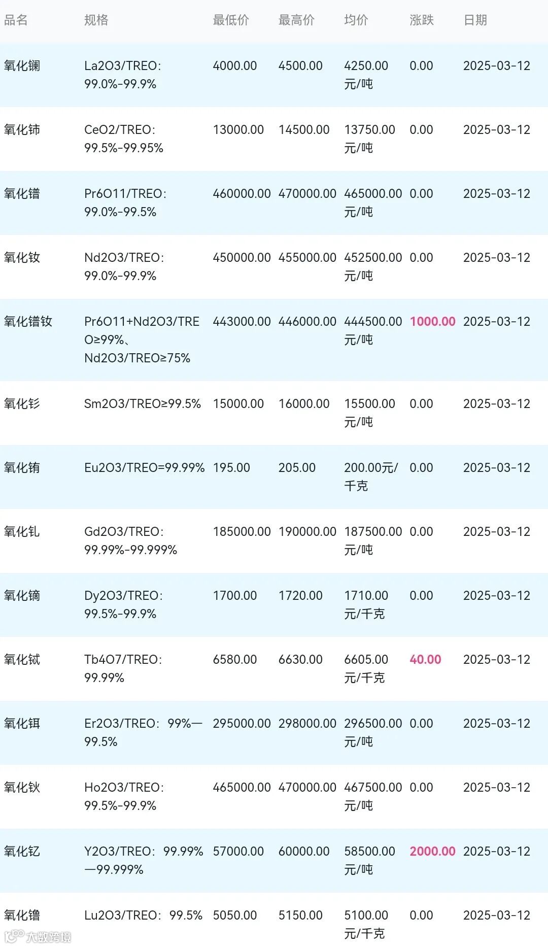 2025年03月12日稀土氧化物材料市场参考价: