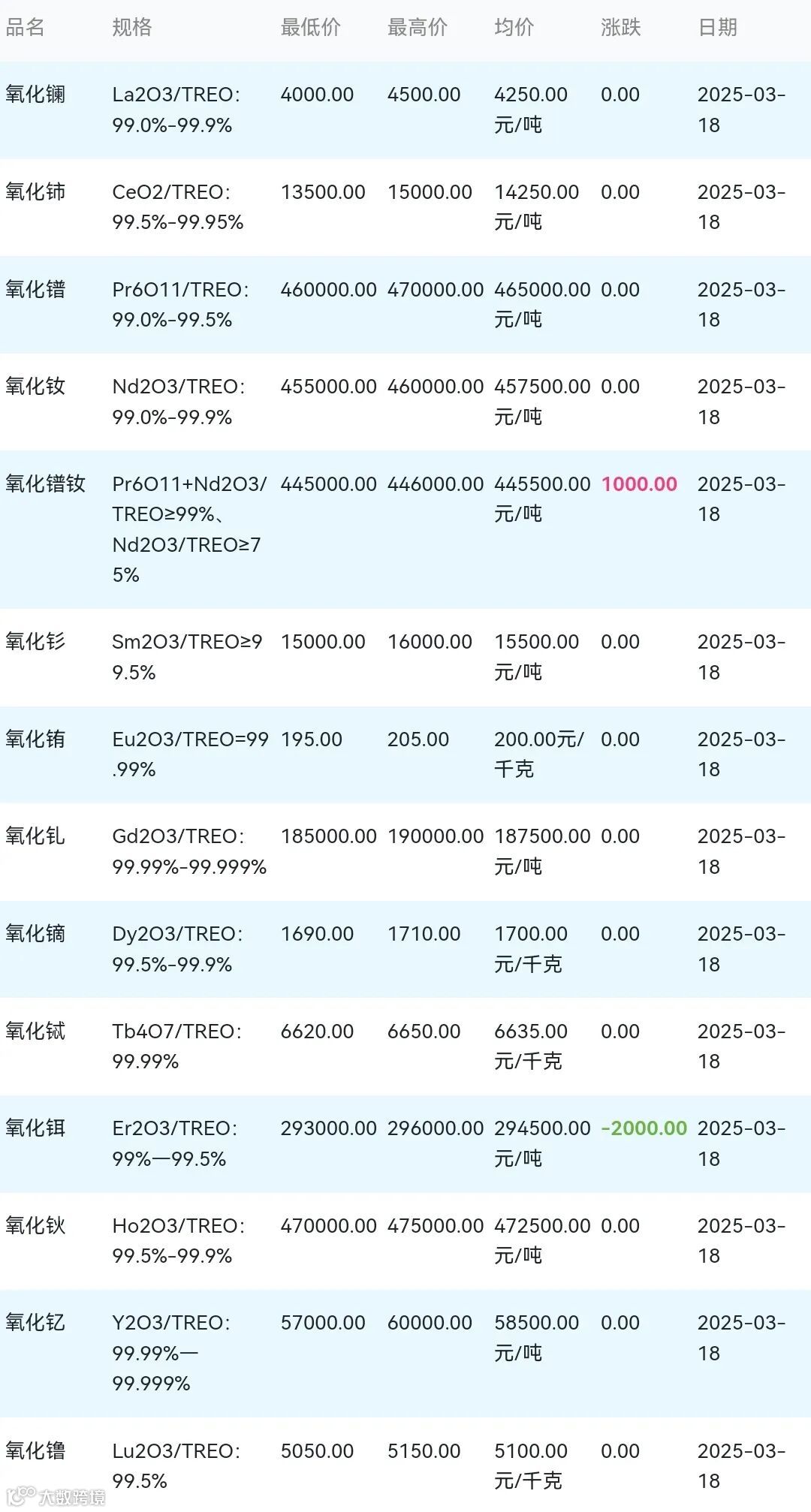 2025年03月18日稀土氧化物材料市场参考价: