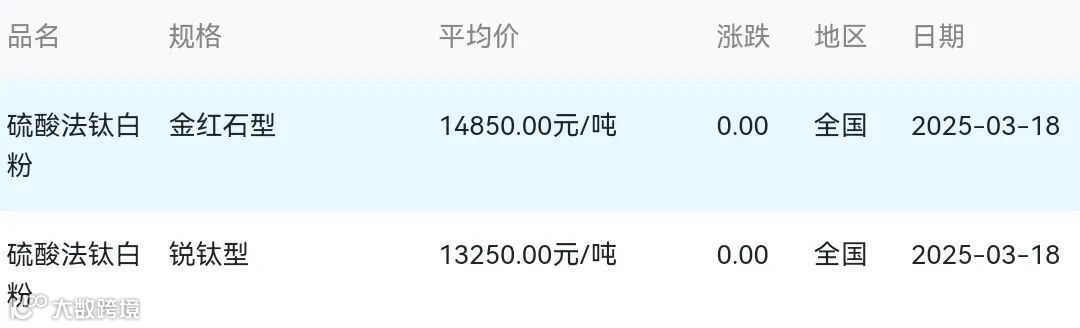 2025年03月18日钛白粉材料市场参考价: