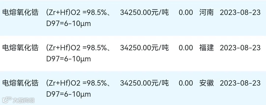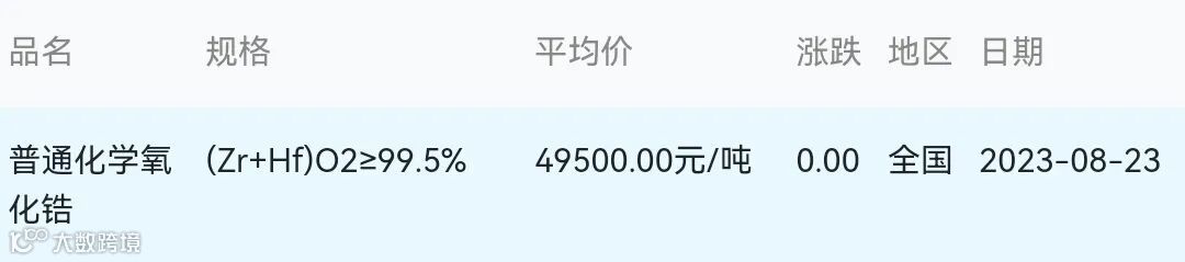 2023年08月23日氧化锆材料市场参考价: