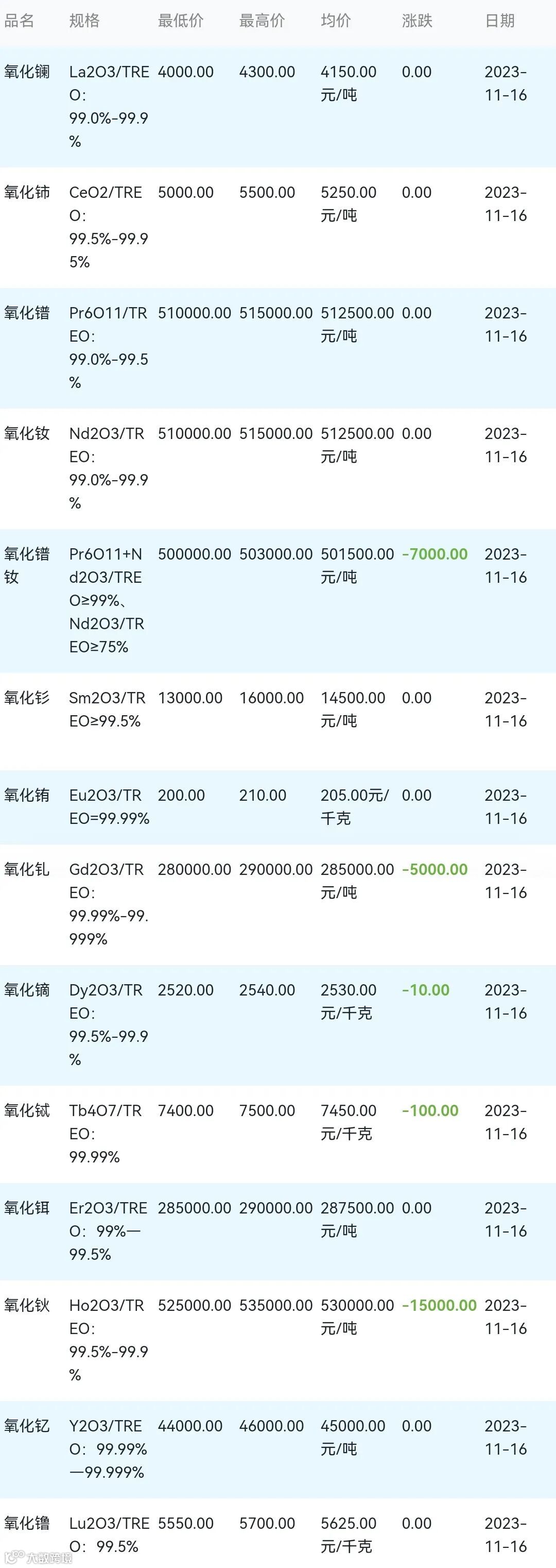 2023年11月16日稀土氧化物材料市场参考价: