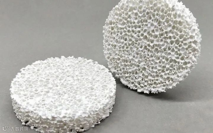在实际生产应用中,多孔氧化铝陶瓷作为过滤网过滤钢铁熔融液,不但能够滤去钢水中杂质以及氮氧化合物等,同时可以大大提高钢铁本身的内在性能。国内外开发的多孔氧化铝陶瓷过滤器件按照不同结构种类可划分为颗粒形状、网结构型、芯型、蜂窝状和泡沫等。