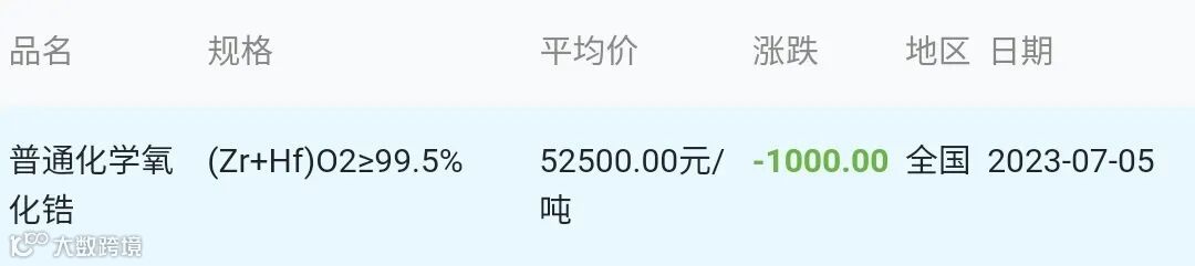 2023年07月05日氧化锆材料市场参考价: