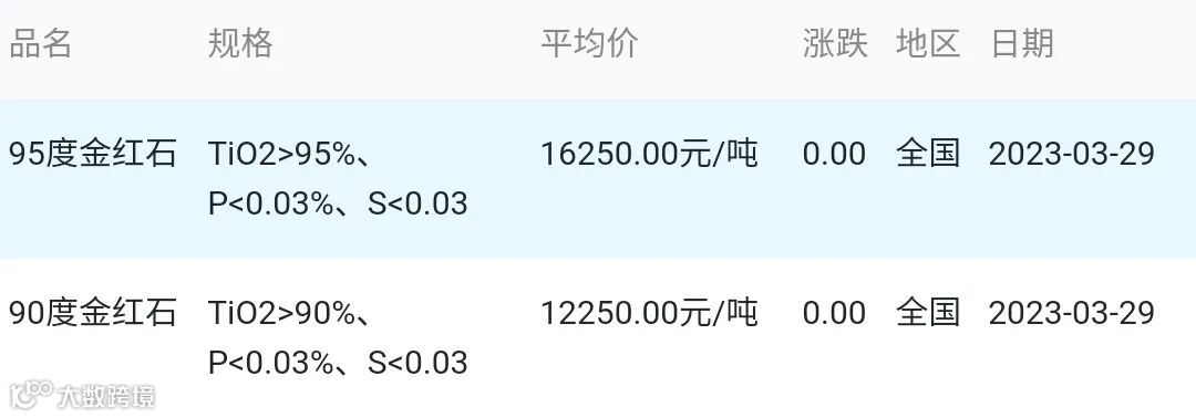 2023年03月29日金红石材料市场参考价: