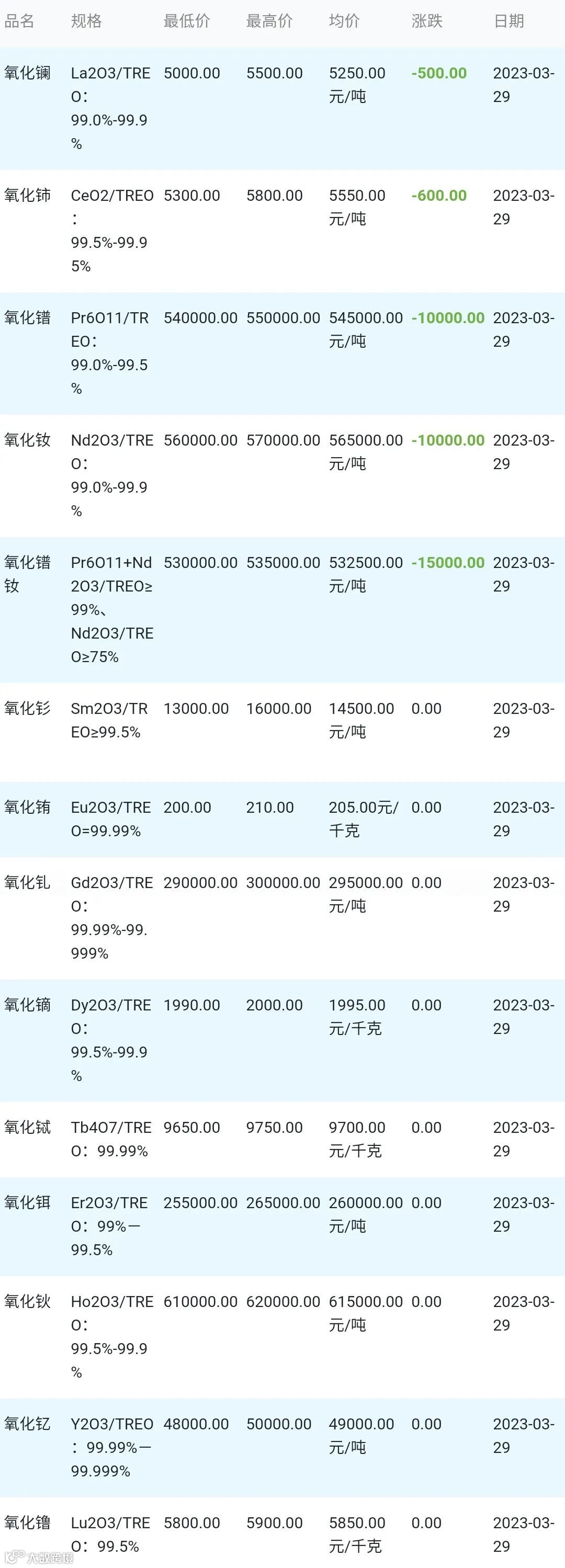 2023年03月29日稀土氧化物材料市场参考价: