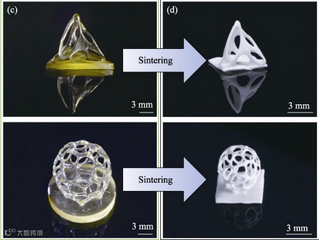 数字光处理成型前驱体坯体照片(c)及
