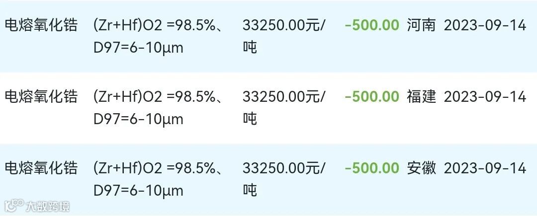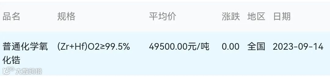 2023年09月14日氧化锆材料市场参考价: