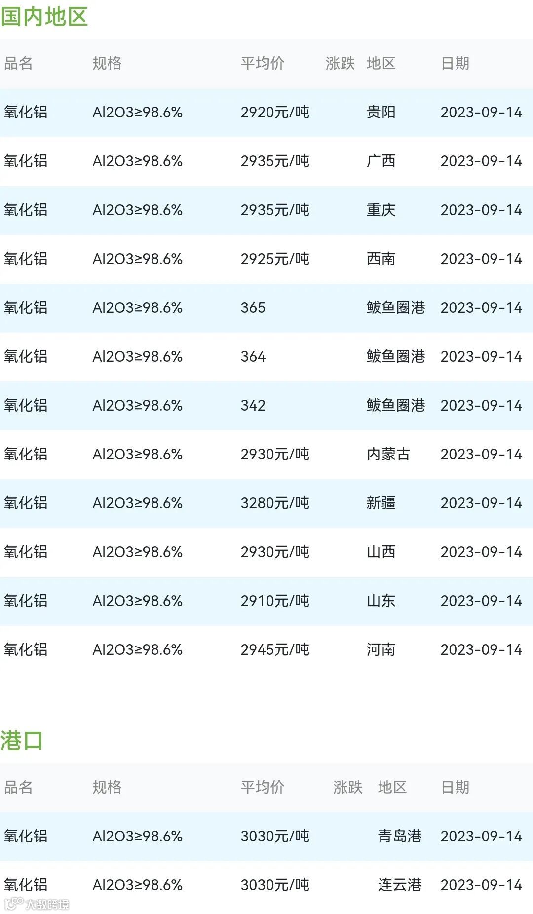 2023年09月14日氧化铝粉体材料市场参考价: