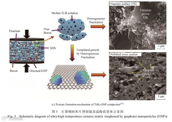 抗热震性能:热冲击性能差的突出问题限制了超高温陶瓷航天部件在大气层高速再入的高温及大温度梯度等极 端环境下的广泛应用。高温极端复杂环境下,晶须和纤维等传统增韧相的损伤和失效限制了陶瓷基体 的高温力学性能。而石墨烯优异的力学和热学性能可以提高陶瓷基复合材料的韧性和热力学性质。
