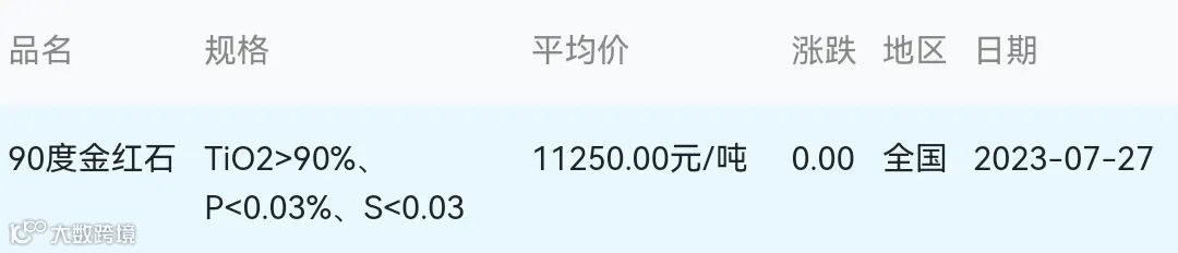 2023年07月27日金红石材料市场参考价: