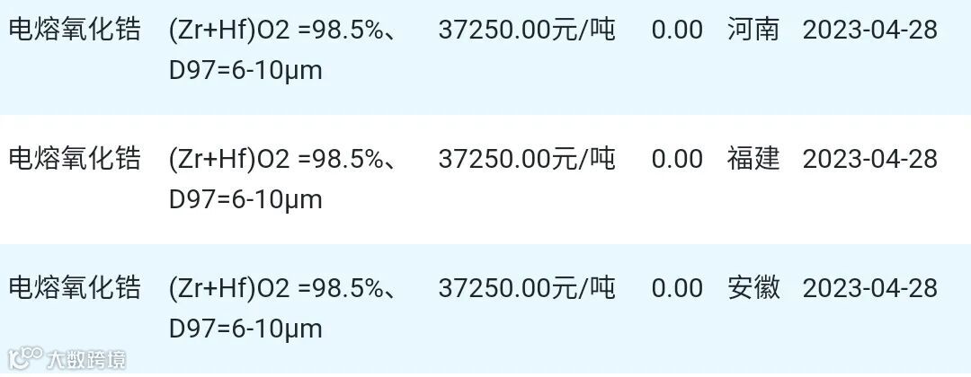 2023年04月28日氧化锆材料市场参考价: