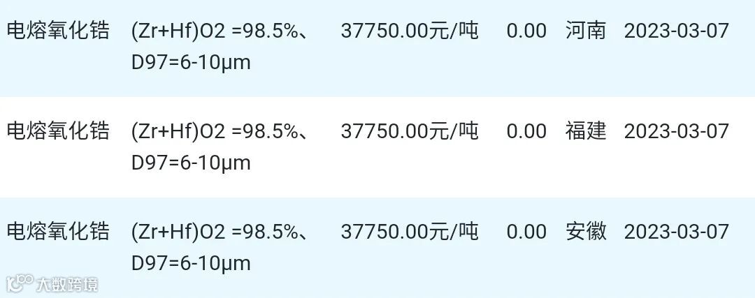 CERADIR先进陶瓷在线2023年03月07日氧化铝粉体材料市场参考价: