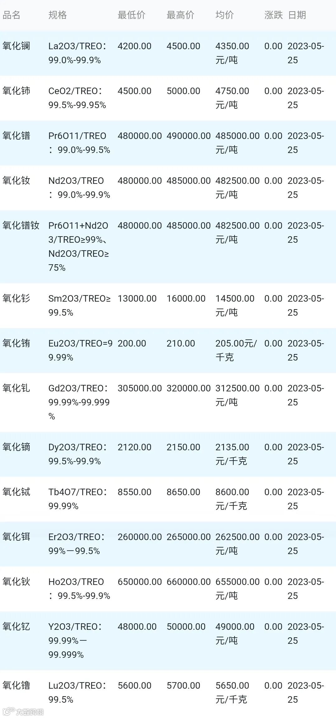 2023年05月25日稀土氧化物材料市场参考价: