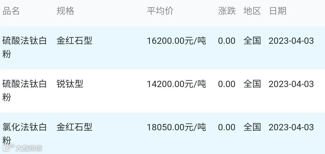 2023年04月03日钛白粉材料市场参考价: