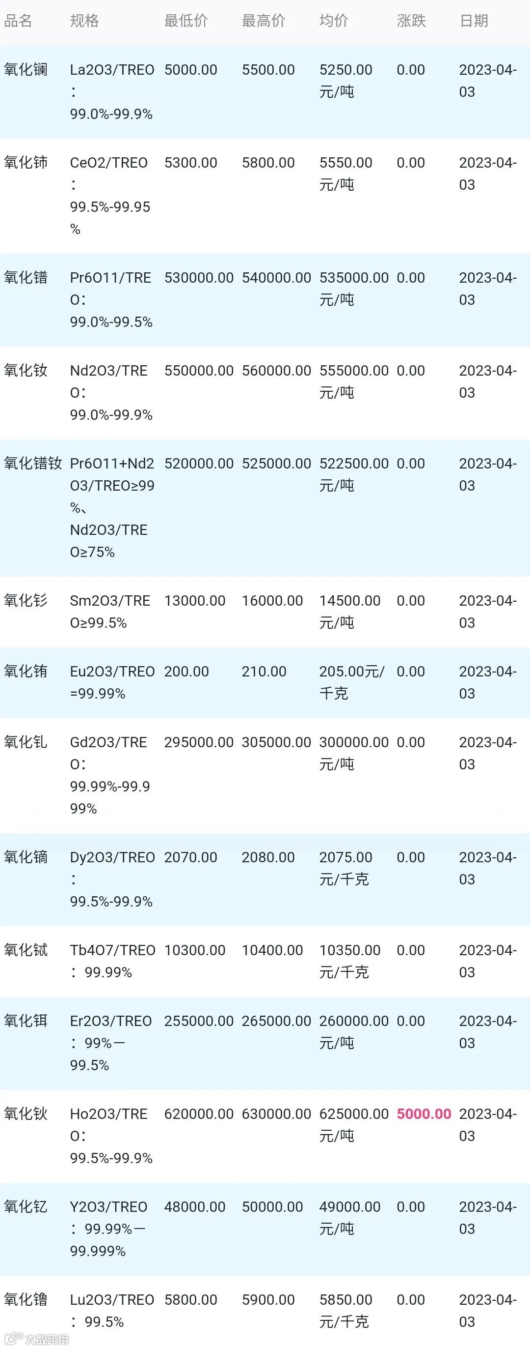 2023年04月03日稀土氧化物材料市场参考价: