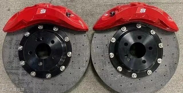 这开的快也得刹得住不是,所以电动车对于制动性能的诉求是越来越高的。我们看到,现在很多电动车原厂就开始配“大鲍鱼”卡钳了。那么再往下进阶,就得使用碳陶刹车盘了。