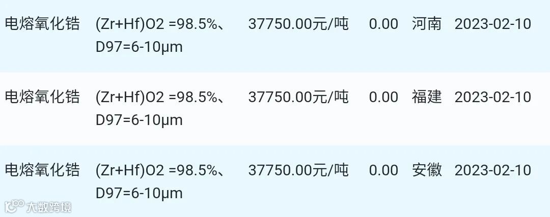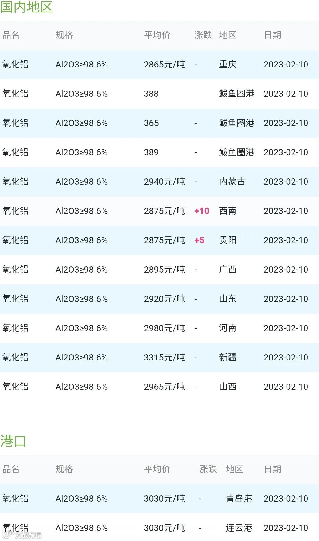 CERADIR先进陶瓷在线2023年02月10日氧化铝粉体材料市场参考价: