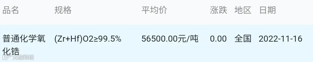 CERADIR先进陶瓷在线2022年11月16日氧化铝粉体材料市场参考价: