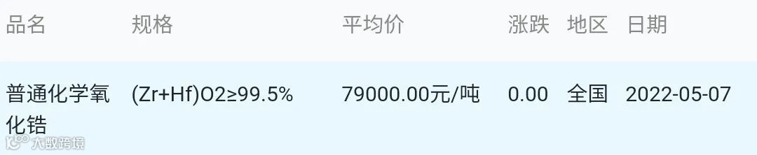 氧化锆材料市场参考价