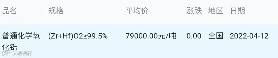 2022年04月12日氧化锆材料市场参考价: