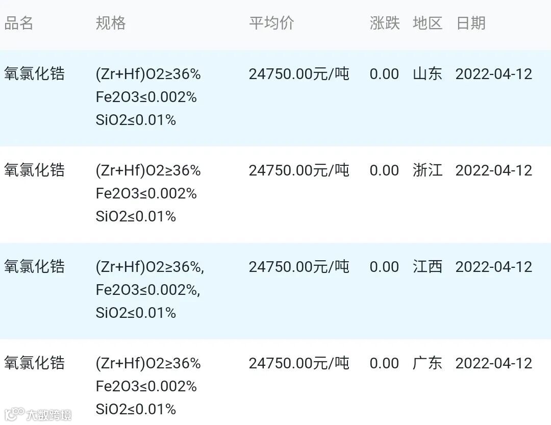 2022年04月12日氧氯化锆材料市场参考价: