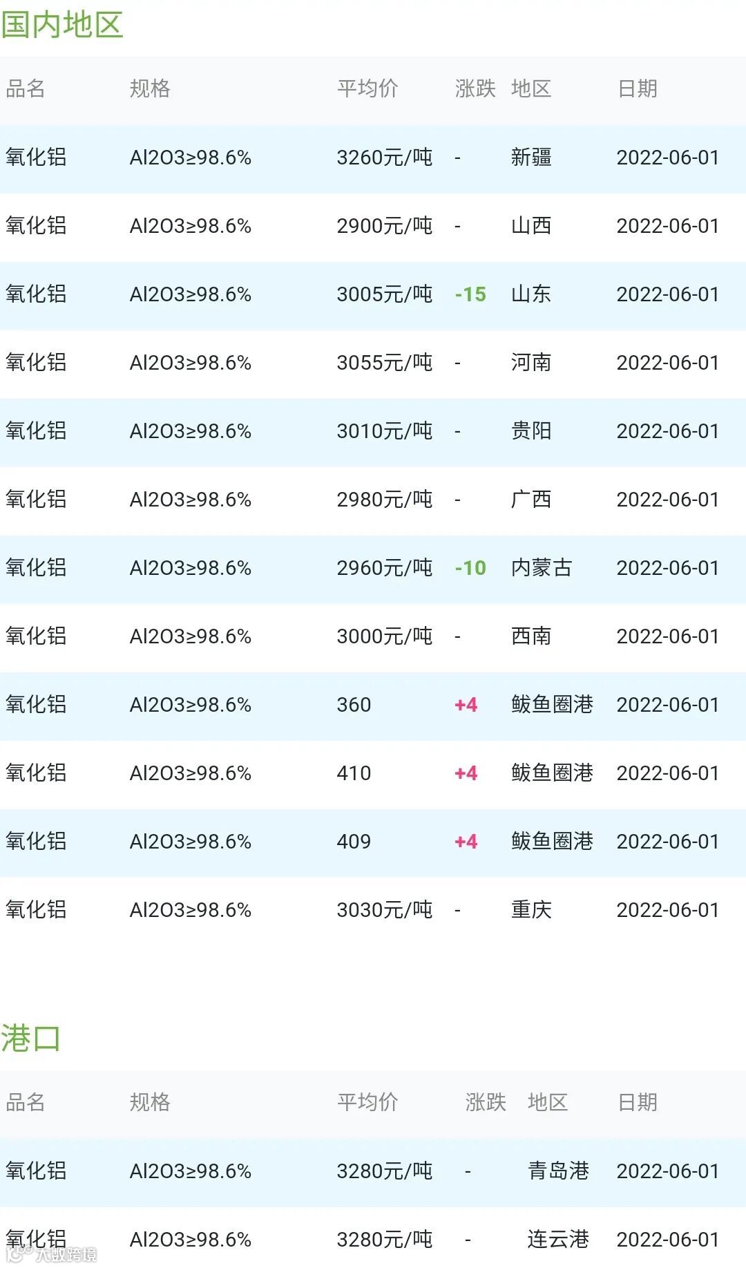 CERADIR:06月01日氧化铝参考价