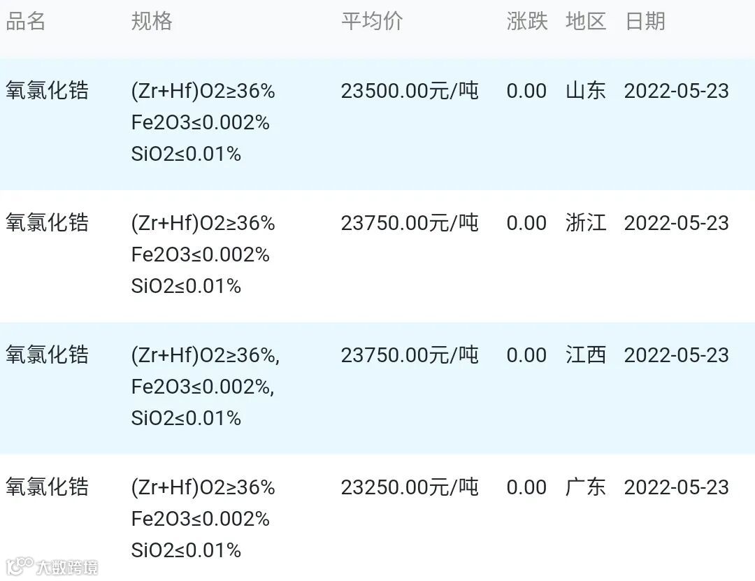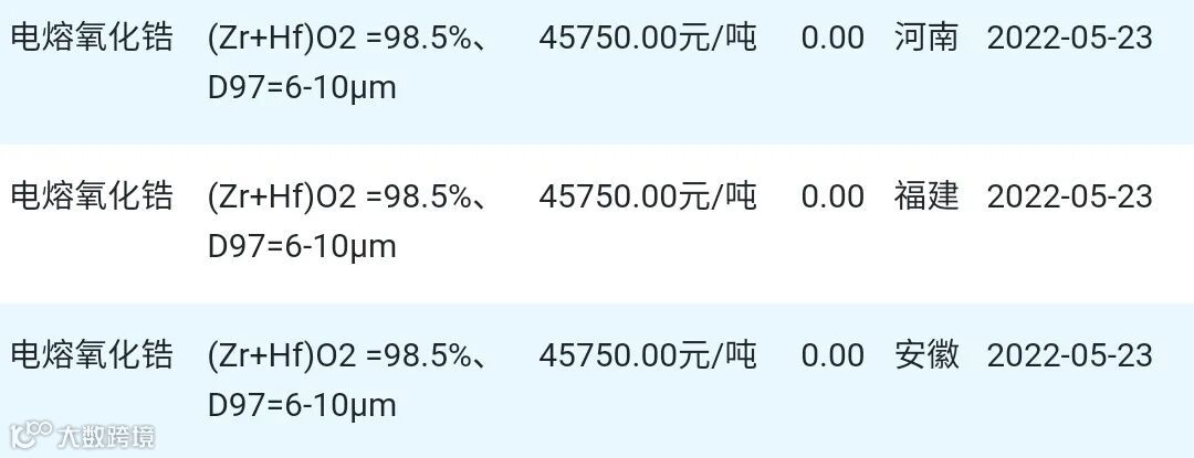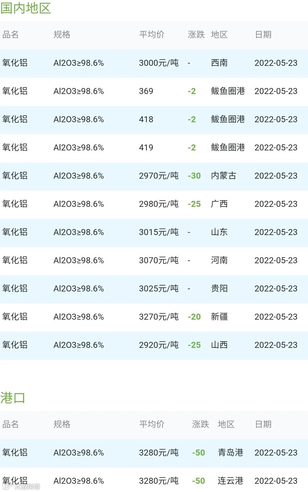 CERADIR先进陶瓷在线2022年05月23日氧化铝粉体材料市场参考价: