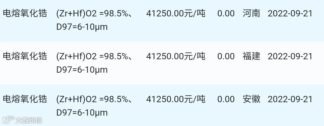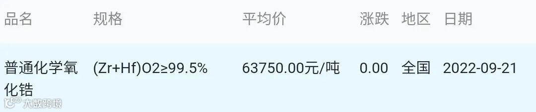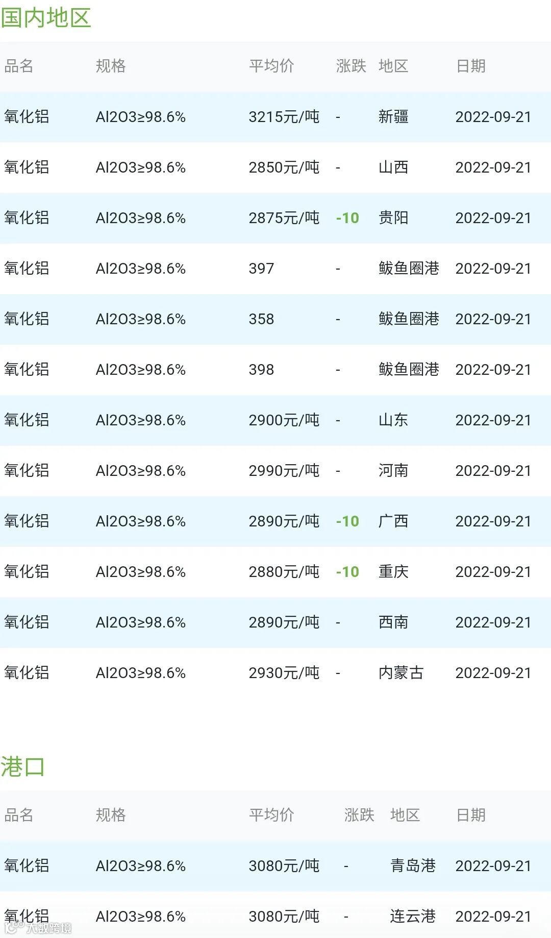 CERADIR先进陶瓷在线2022年09月21日氧化铝粉体材料市场参考价: