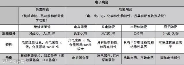 电子陶瓷是指应用于电子工业中制备各种电子元器件的陶瓷材料,是采用人工精制的无机粉末为原料,通过结构设计、精确的化学计量、合适的成型方法和烧成制度而达到特定的性能,经过加工处理使之符合使用要求尺寸精度的无机非金属材料。电子陶瓷一般可分为装置陶瓷和功能陶瓷。