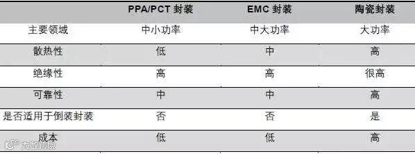 LED 封装材料多种多样,各自有各自占优的领域,而陶瓷封装在大功率LED领域有着统治性的地位。