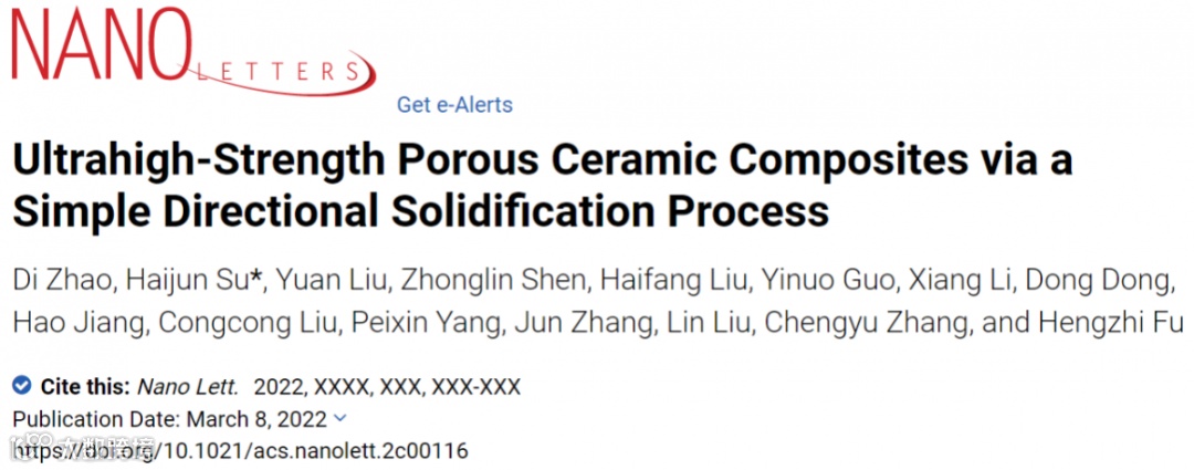 西工大苏海军等人Nano Letters: 定向凝固刷新多孔陶瓷强度新纪录!