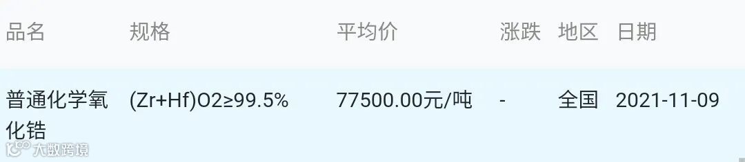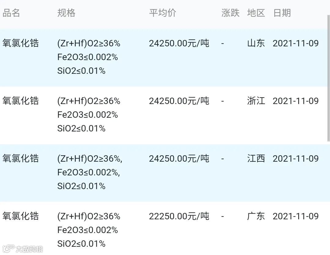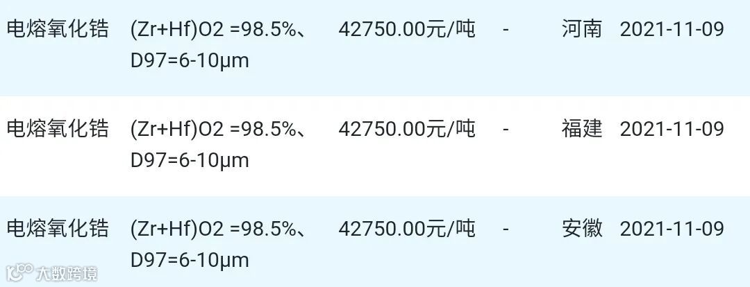 CERADIR先进陶瓷在线2021年11月09日氧化铝粉体材料市场参考价: