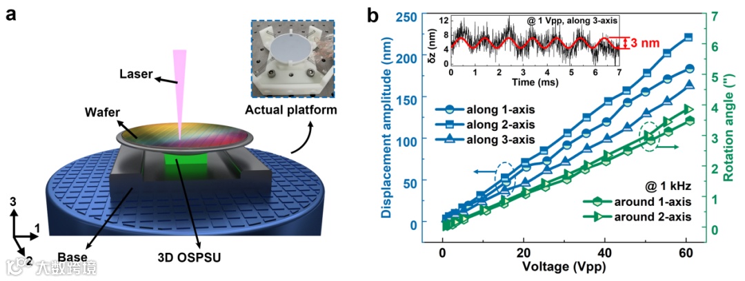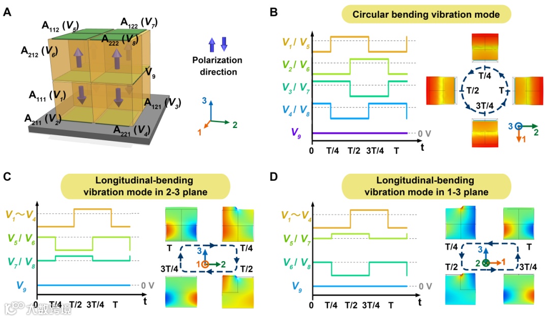 图2 3D OSPSU的可程控、非谐振人工模态激发首次利用单个压电陶瓷独石体产生五自由度微纳米驱动