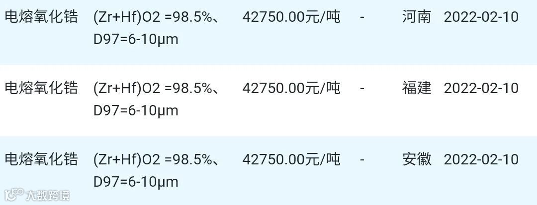 CERADIR先进陶瓷在线2022年02月10日氧化铝粉体材料市场参考价: