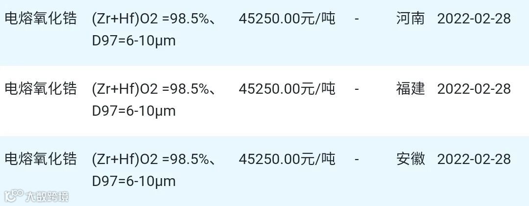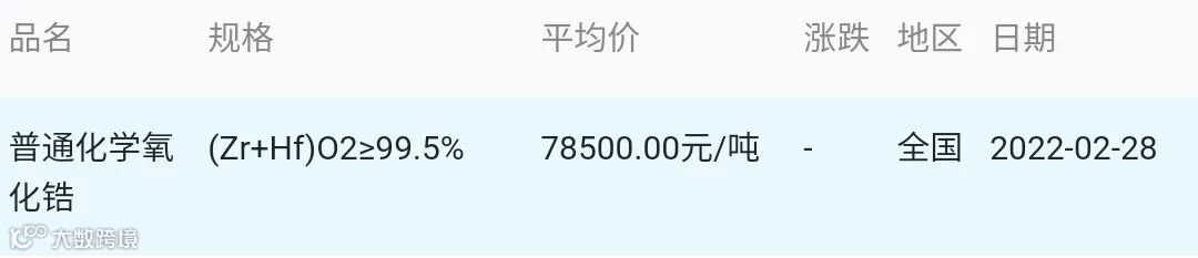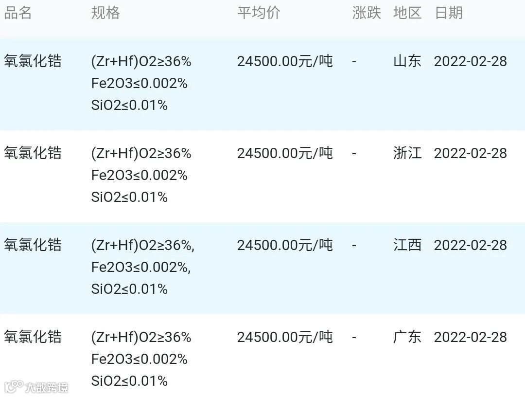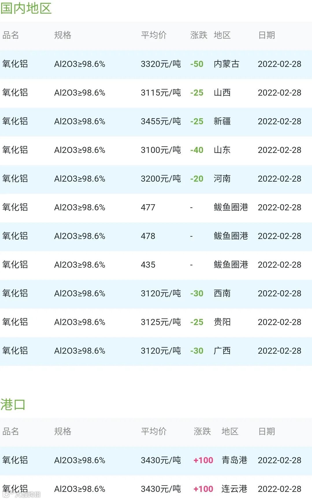 CERADIR先进陶瓷在线2022年02月28日氧化铝粉体材料市场参考价: