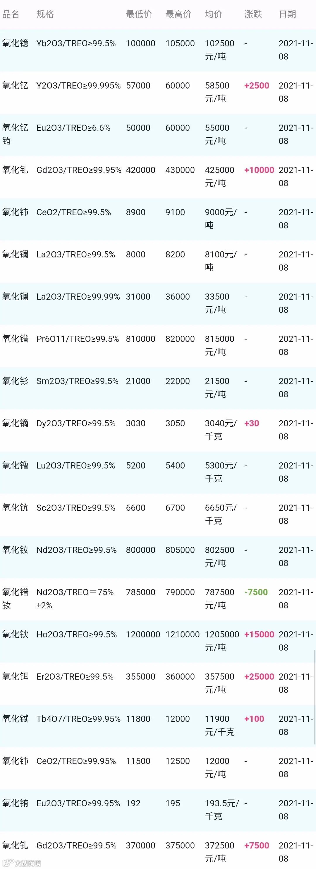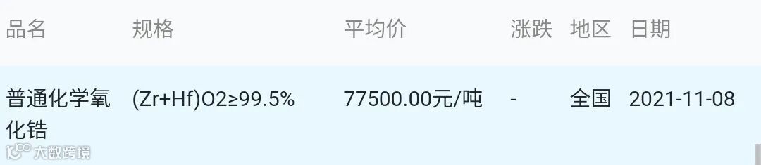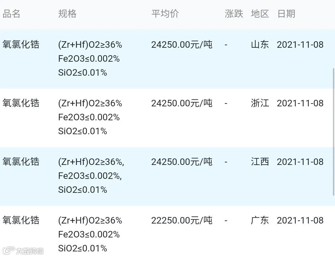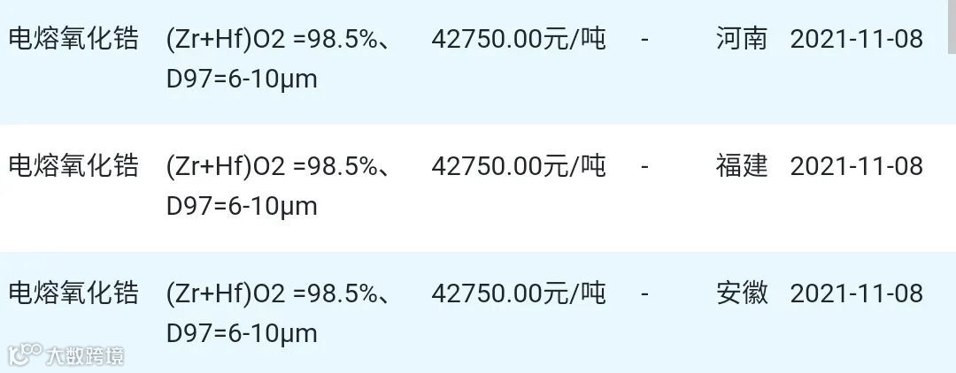 CERADIR先进陶瓷在线2021年11月08日氧化铝粉体材料市场参考价: