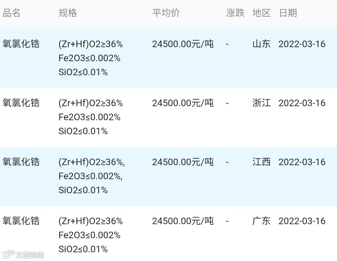 2022年03月16日氧氯化锆材料市场参考价: