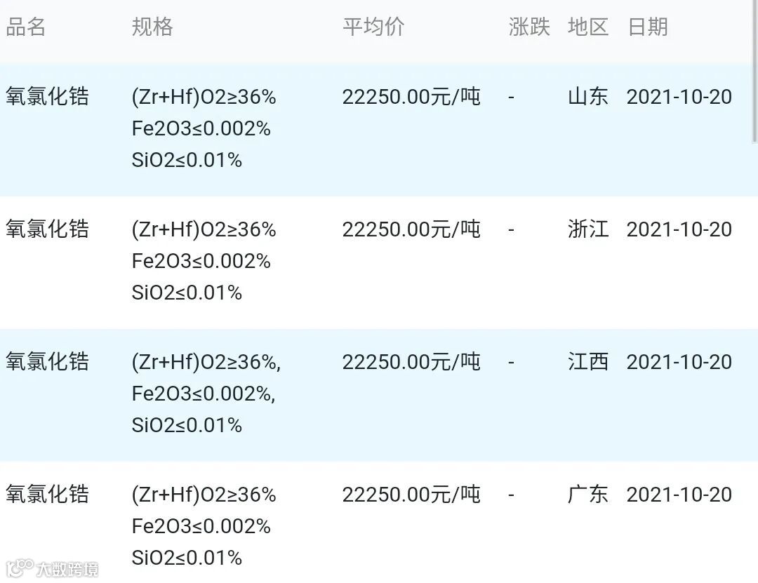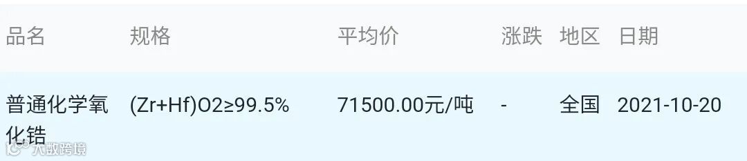 CERADIR先进陶瓷在线2021年10月20日氧化铝粉体材料市场参考价: