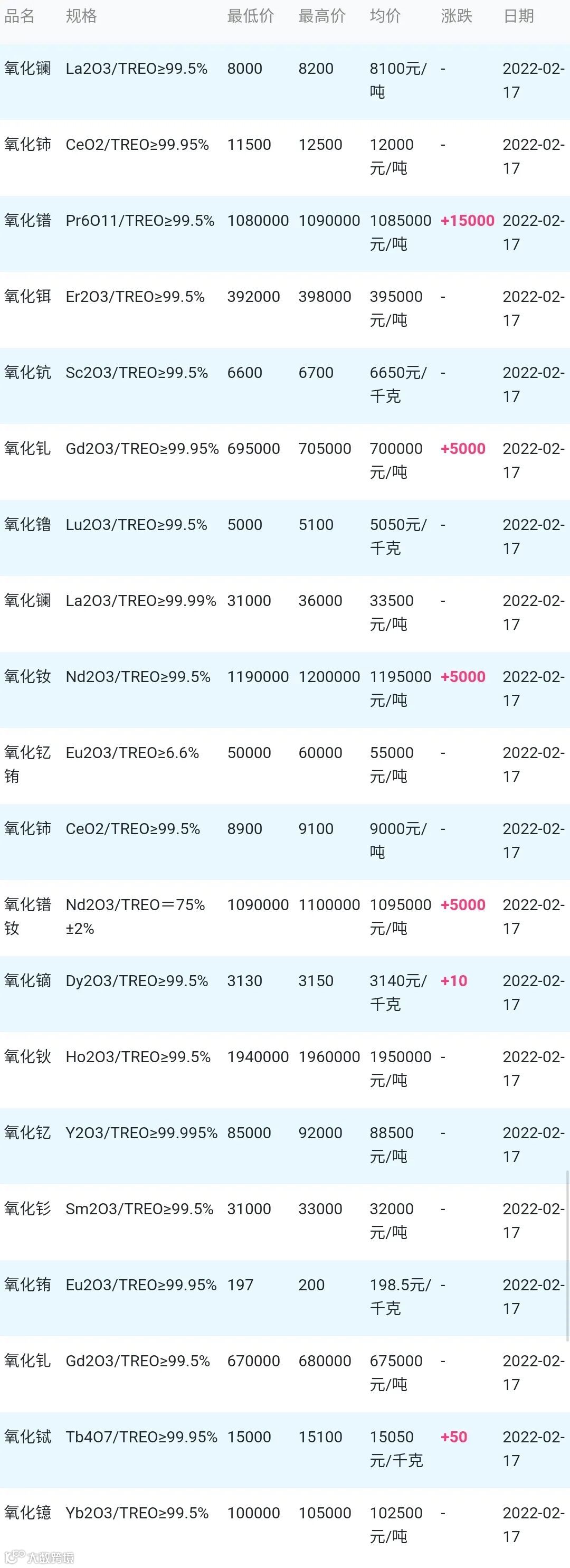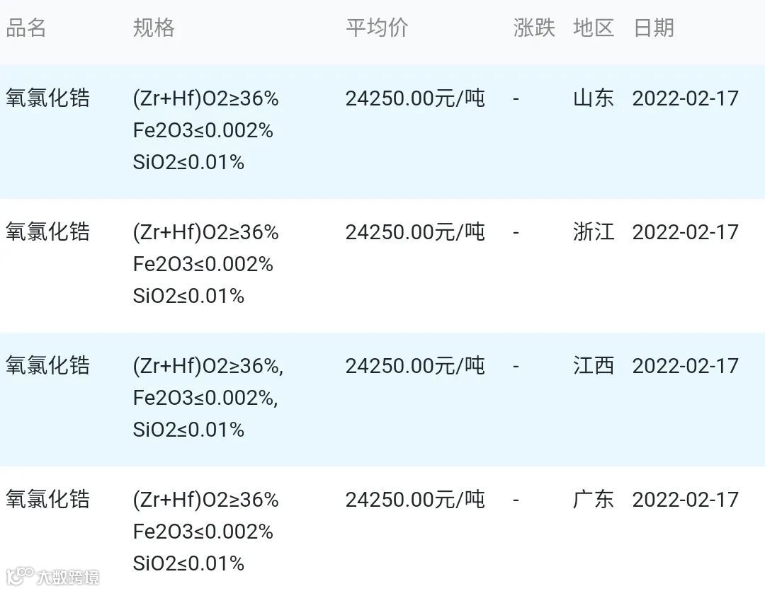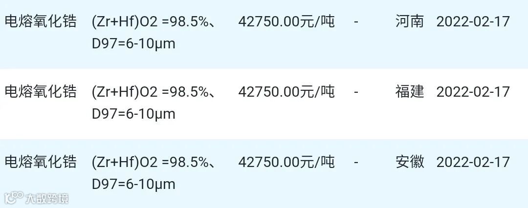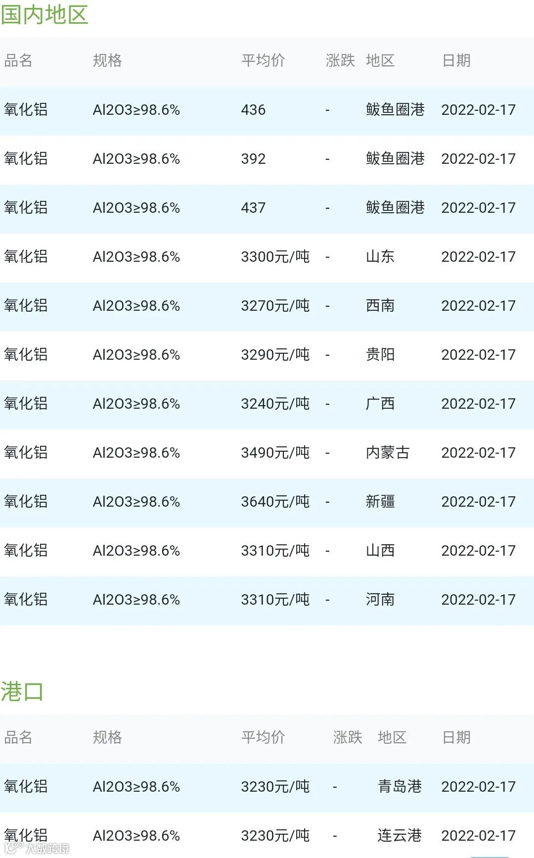 CERADIR先进陶瓷在线2022年02月17日氧化铝粉体材料市场参考价: