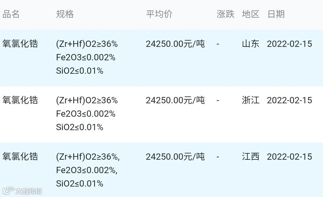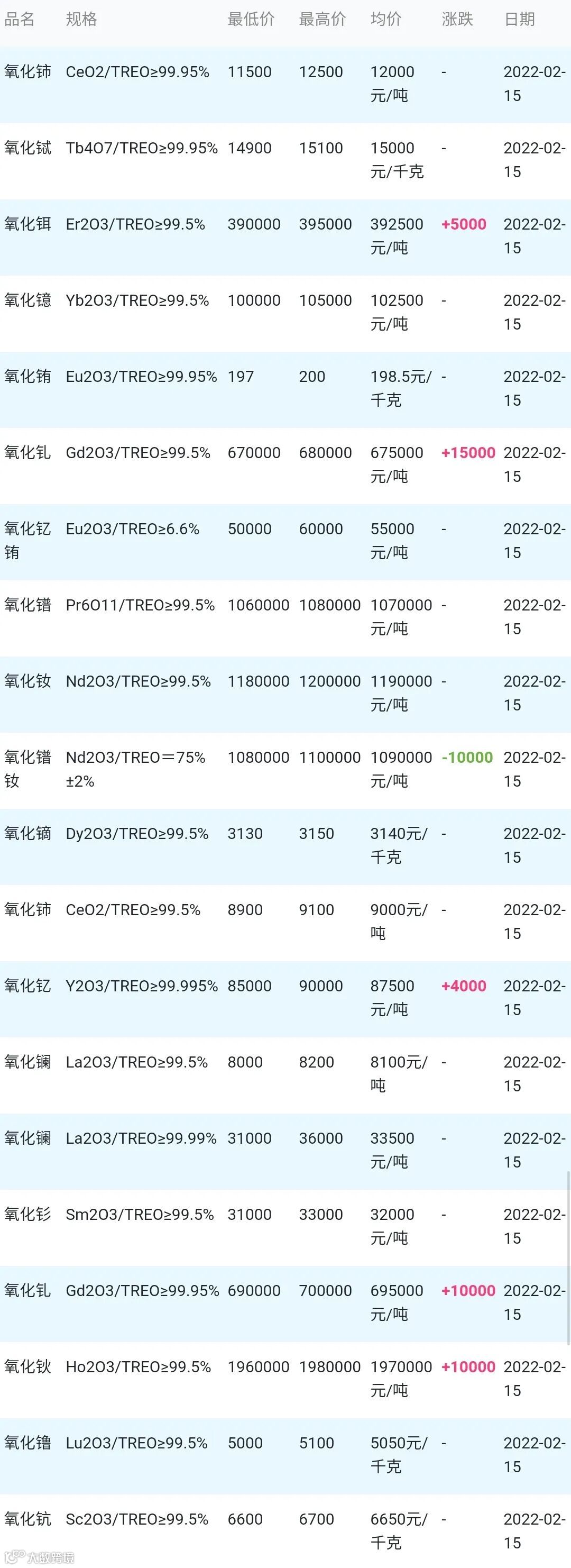 CERADIR:02月15日原材料&稀土氧化物参考价
