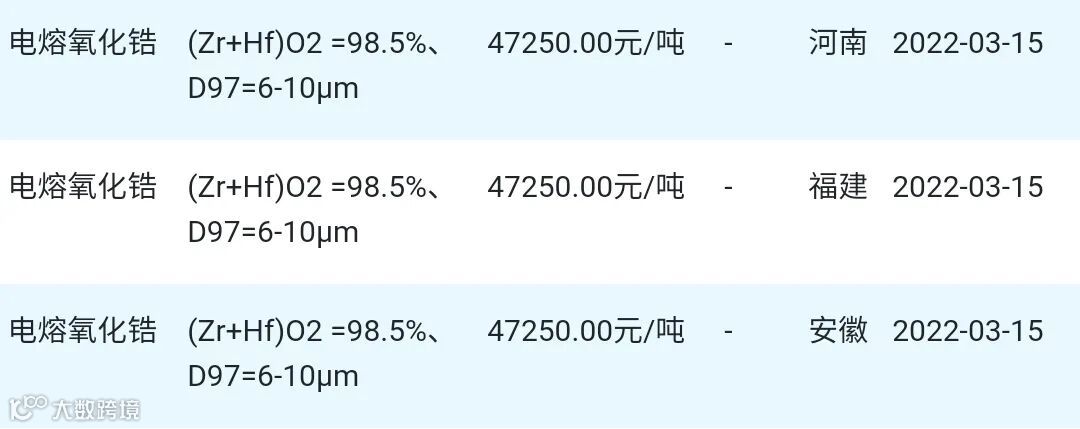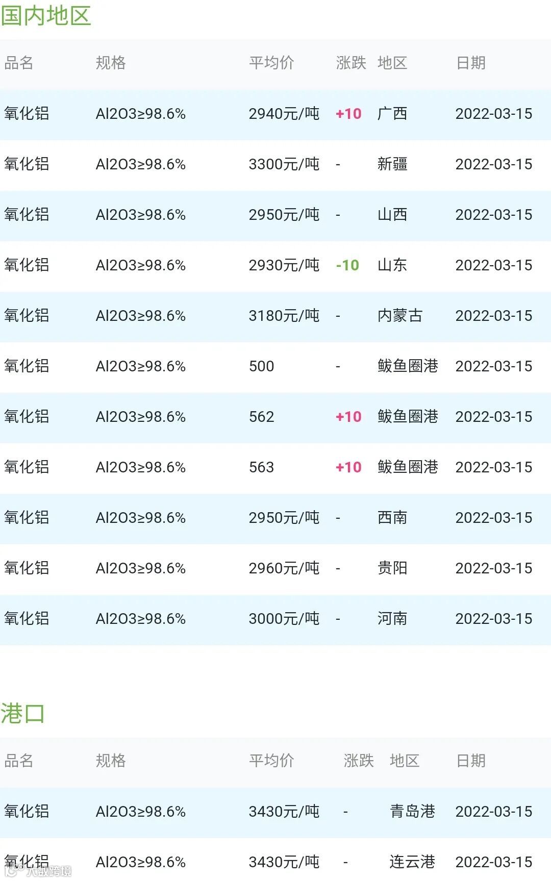 CERADIR先进陶瓷在线2022年03月15日氧化铝粉体材料市场参考价: