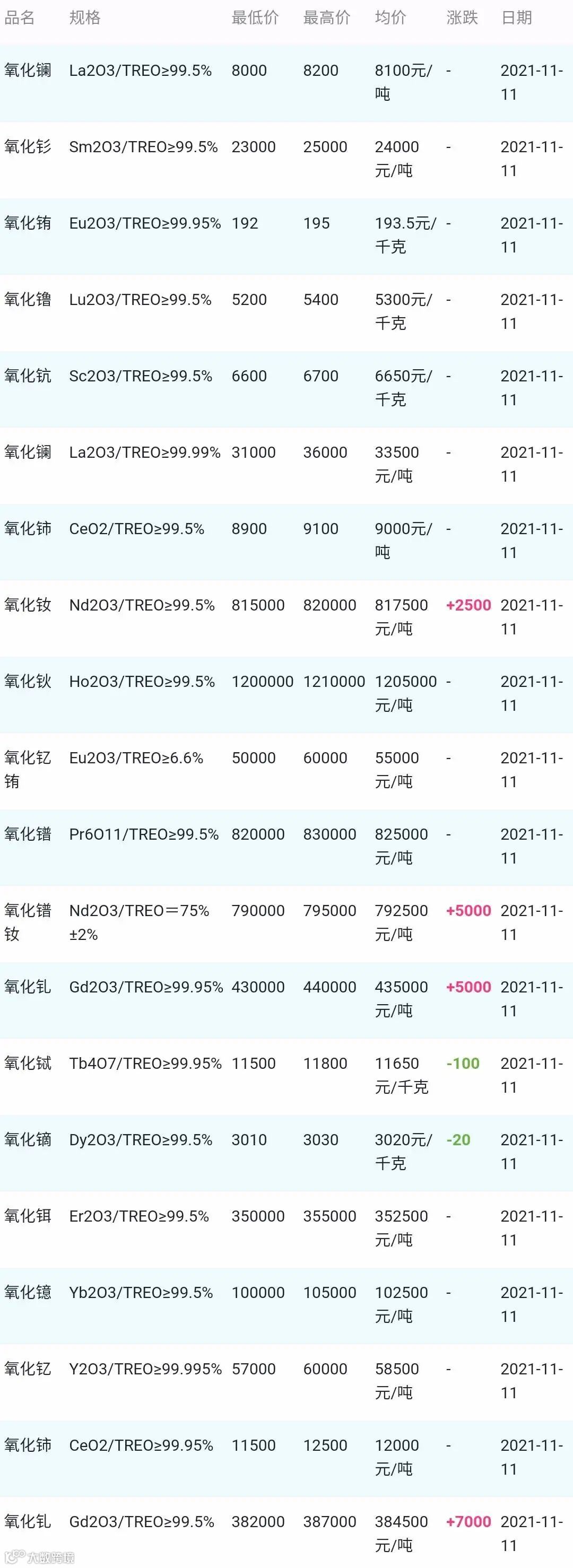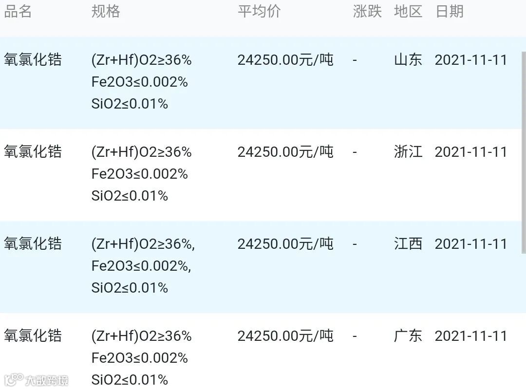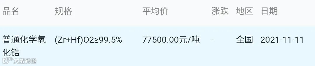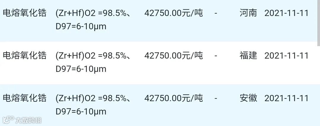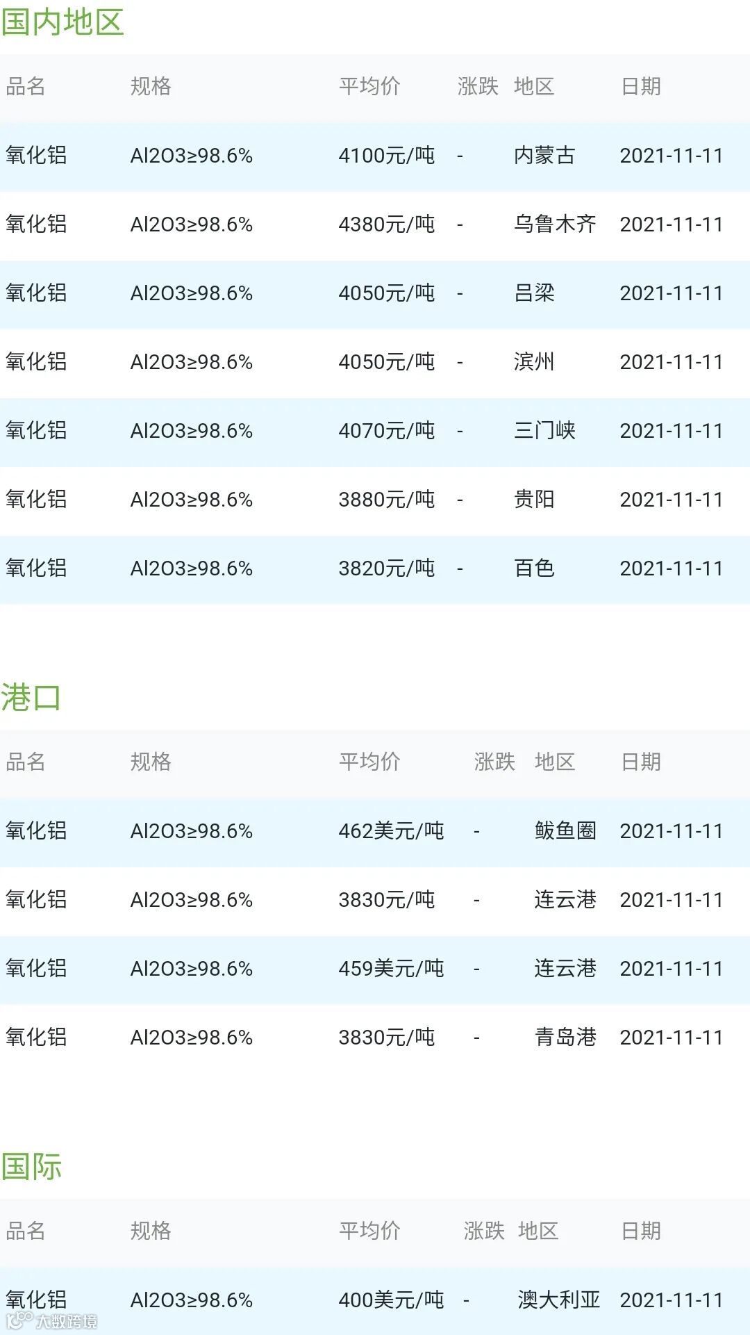 CERADIR先进陶瓷在线2021年11月11日氧化铝粉体材料市场参考价: