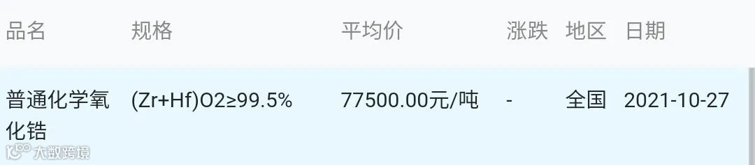 CERADIR先进陶瓷在线2021年10月27日氧化铝粉体材料市场参考价: