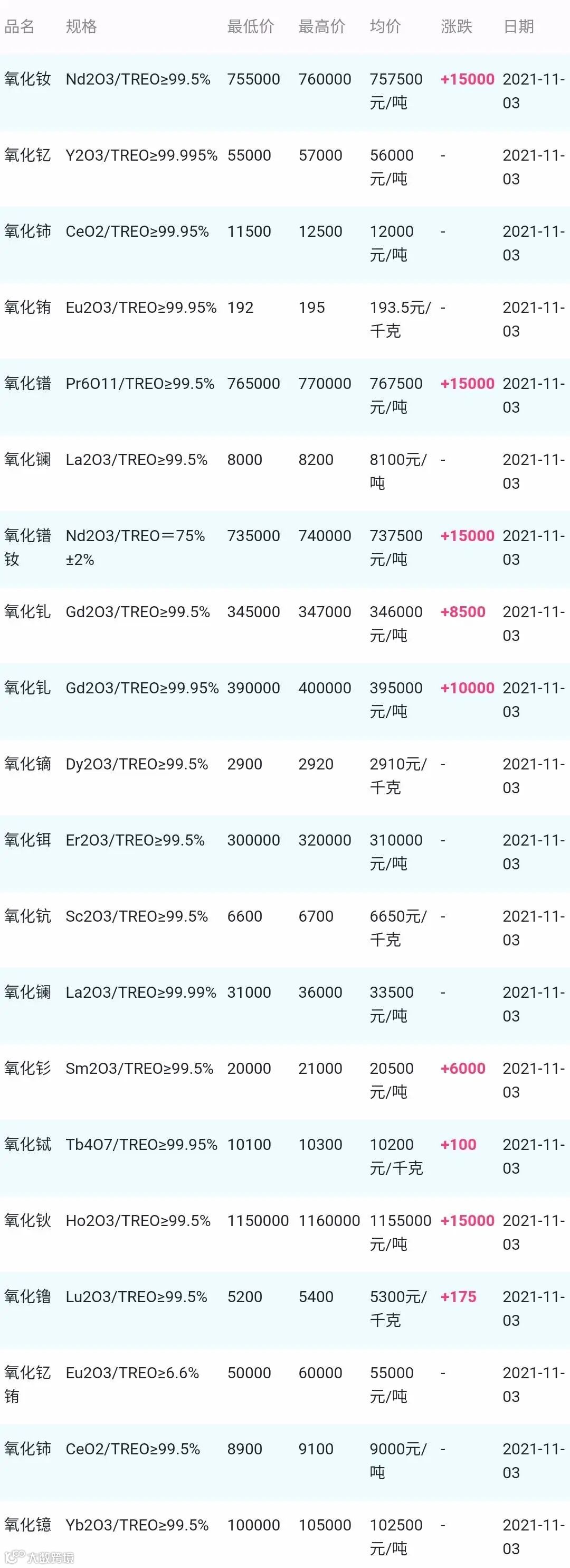 2021年11月03日稀土氧化物材料市场参考价: