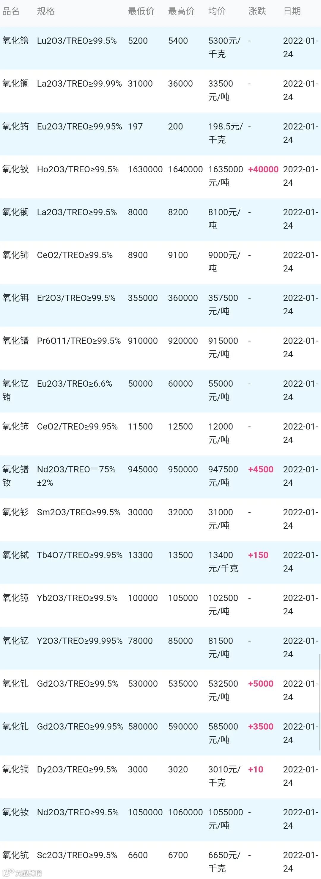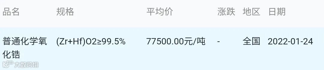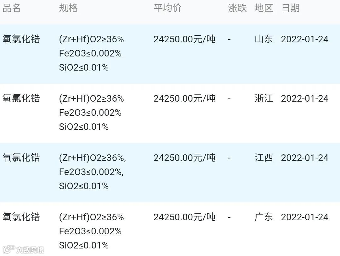 CERADIR先进陶瓷在线2022年01月24日氧化铝粉体材料市场参考价: