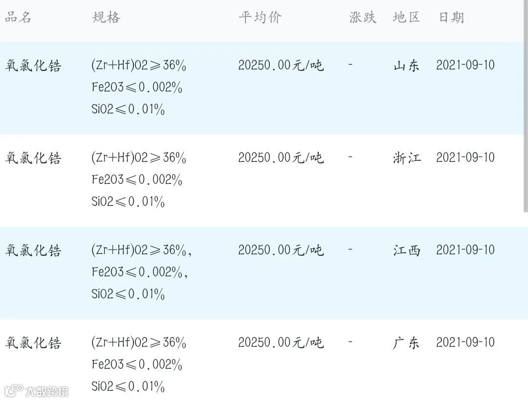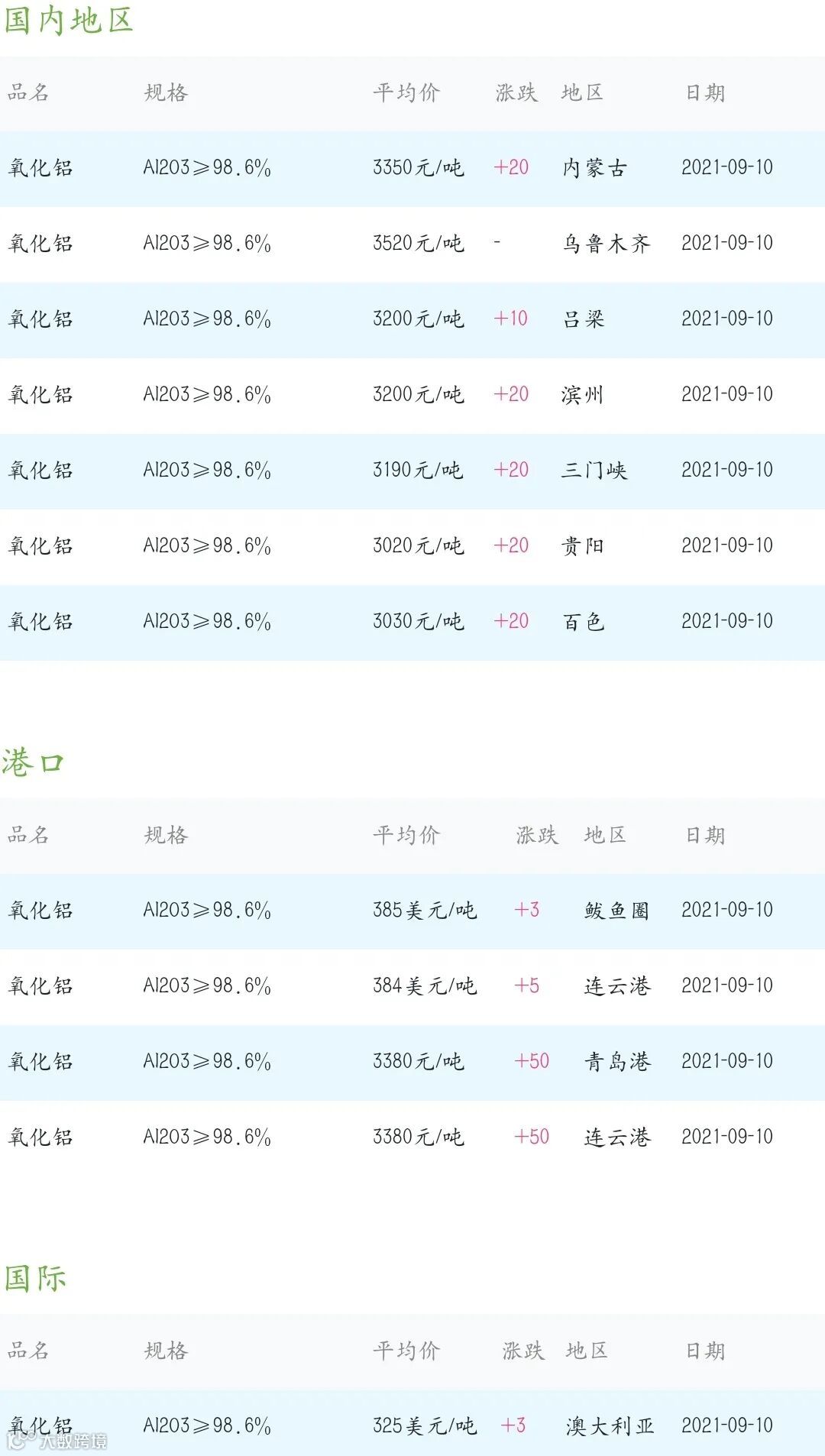 CERADIR先进陶瓷在线2021年9月10日氧化铝粉体材料市场参考价: