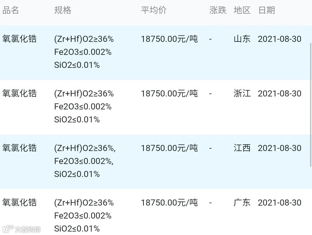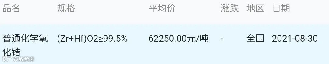 CERADIR先进陶瓷在线2021年8月30日氧化铝粉体材料市场参考价: