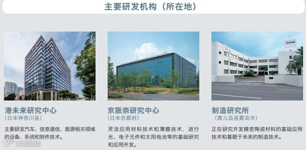 此外,京瓷的研究开发——构筑有关原材料、零部件、元件、设备、系统和软件的研发部门以及生产工序技术的全球性研究网络。把“港未来”和“京阪奈”作为研究开发的核心基地,在谋求集团内部资源有机融合的同时,促进与公司外部合作的开放创新,为公司业务的成长和社会的进步与发展做出贡献。