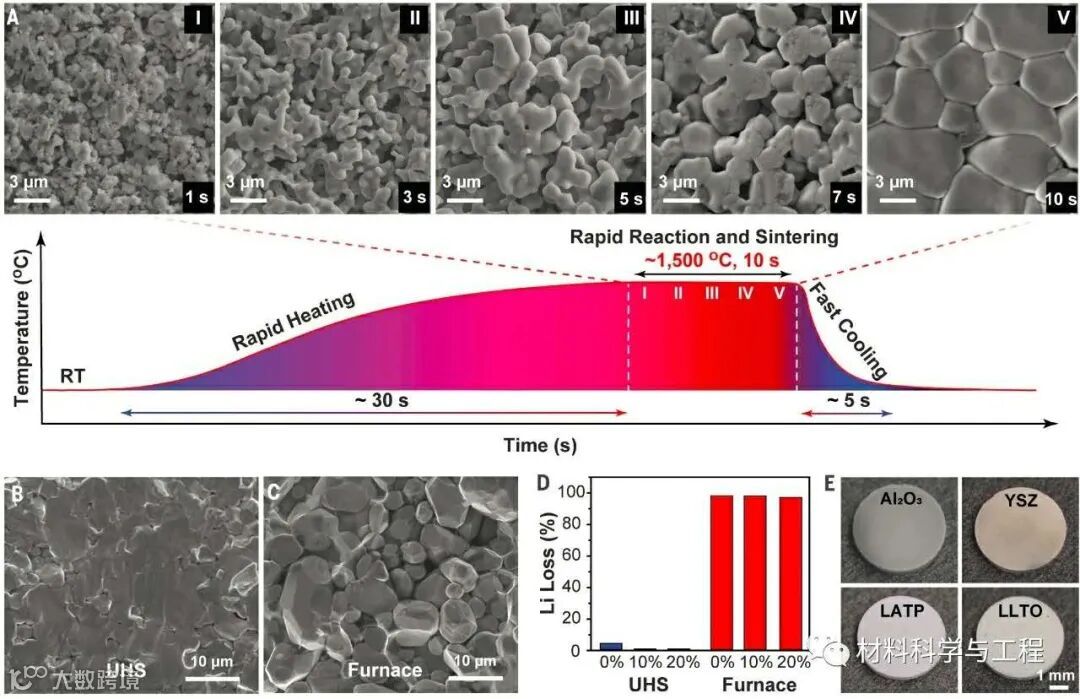 (E)用UHS技术在10s内共烧结100个陶瓷样品的原理图;
